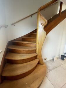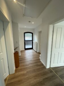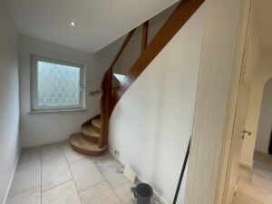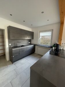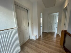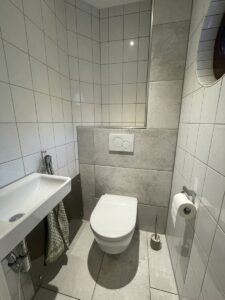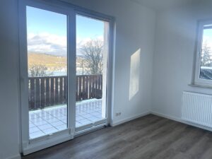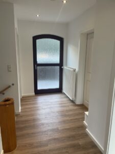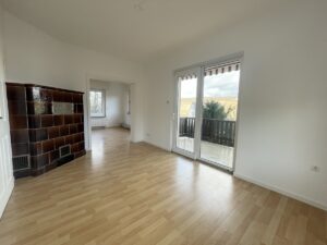 - Erdgeschoss: Wohn- und Essbereich mit Kachelofen und Zugang zum Balkon, Küche (Übernahme gegen Abstandszahlung möglich) mit Vorratskammer, Gäste-WC, Diele