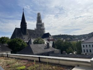 In den beiden Eingangsbereichen ist genügend Platz für Garderoben. Kochen, Essen und Wohnen sind perfekt vereint. Die Bäder sind sehr geräumig, eines davon wurde erst vor einigen Jahren geschmackvoll renoviert und verfügt über einen Waschmaschinenanschluss. On Top begeistert diese 93 m² große Wohnung mit zwei Relax-Balkonen und einer wunderbaren Aussicht zur Basilika und den Mäuseturm.