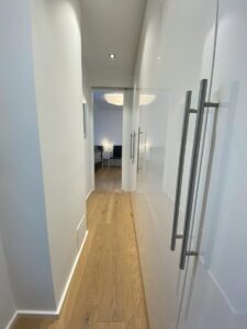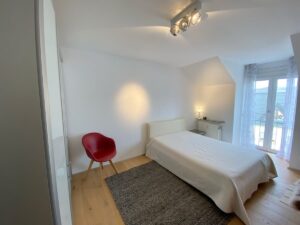 Das Schlafzimmer, mit bodentiefen Fenstern und einem französischem Balkon, verfügt über einen Ankleidebereich mit Bad en Suite. Zwei weitere Zimmer und Ihre Gäste teilen sich ein separates Duschbad.
